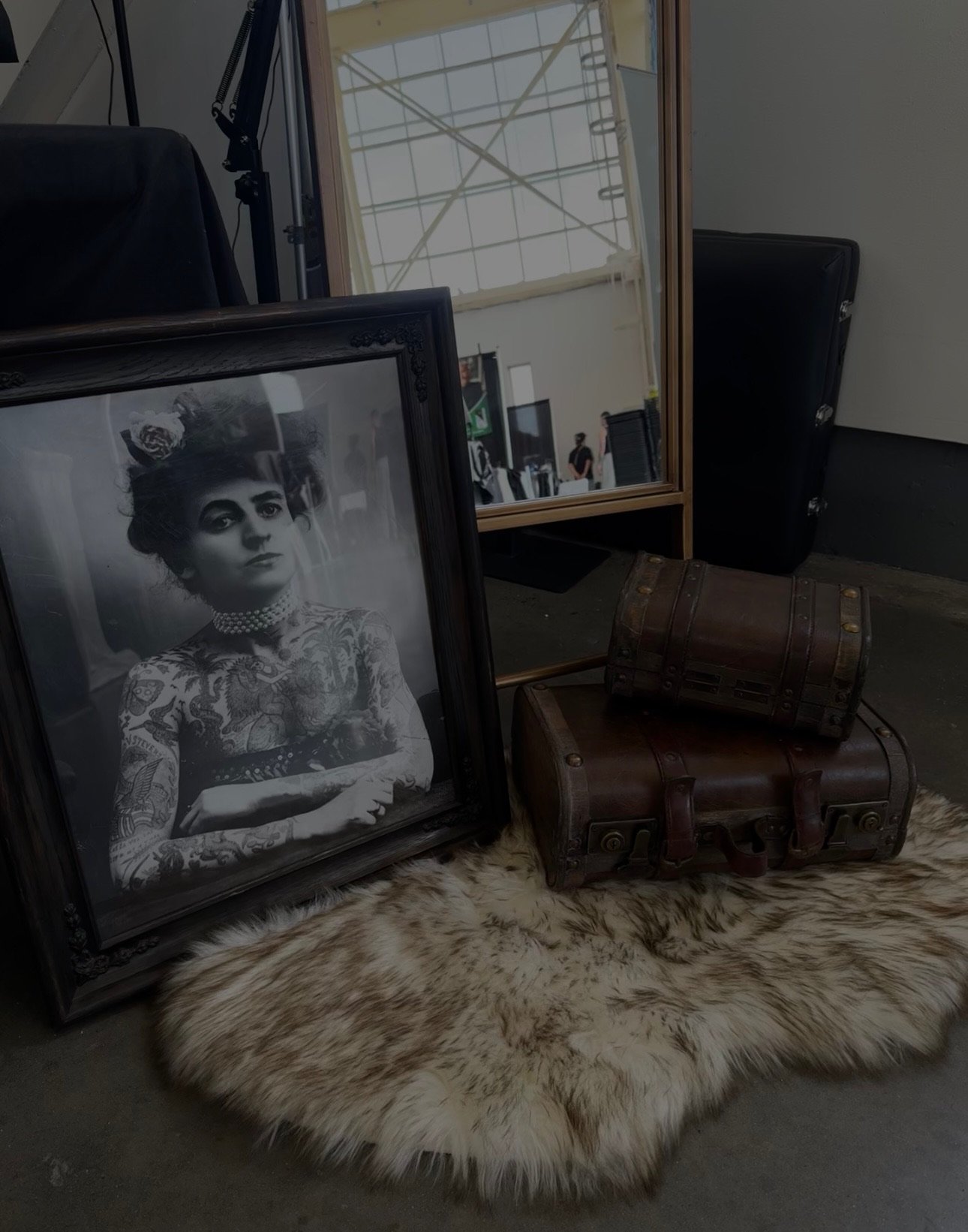 She has been around the tattoo and piercing industry for many years, collecting different pieces of artwork and jewelry in black, gray, and gold along the way.